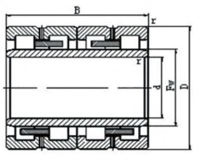 Bantalan rol silinder empat baris dapat membawa beban radial dan beban kejut yang jauh lebih berat.Mereka memiliki presisi yang lebih tinggi dan dapat diterapkan pada peralatan yang bekerja dengan kecepatan rotasi tinggi.Menggiling permukaan raceway dan roller pada saat yang sama setelah cincin bagian dalam ditekan pada leher roller, ini mendukung peningkatan presisi penggulungan dan penyesuaian bebas jarak pemasangan bantalan.Bantalan ini sebagian besar diterapkan pada rol kerja dan rol cadangan dari rolling mills dan beberapa kasus lainnya.